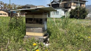 4月3日この地域もいよいよ分蜂が始まったようです。畑に置いている日本蜜蜂の待ち箱に探索蜂がやってきました。こんな感じで20匹以上来ていました。今にも本体がやってくるかとちょっとドキドキしましが、夕方になっても本体は来ず、17時を過ぎると5匹...
