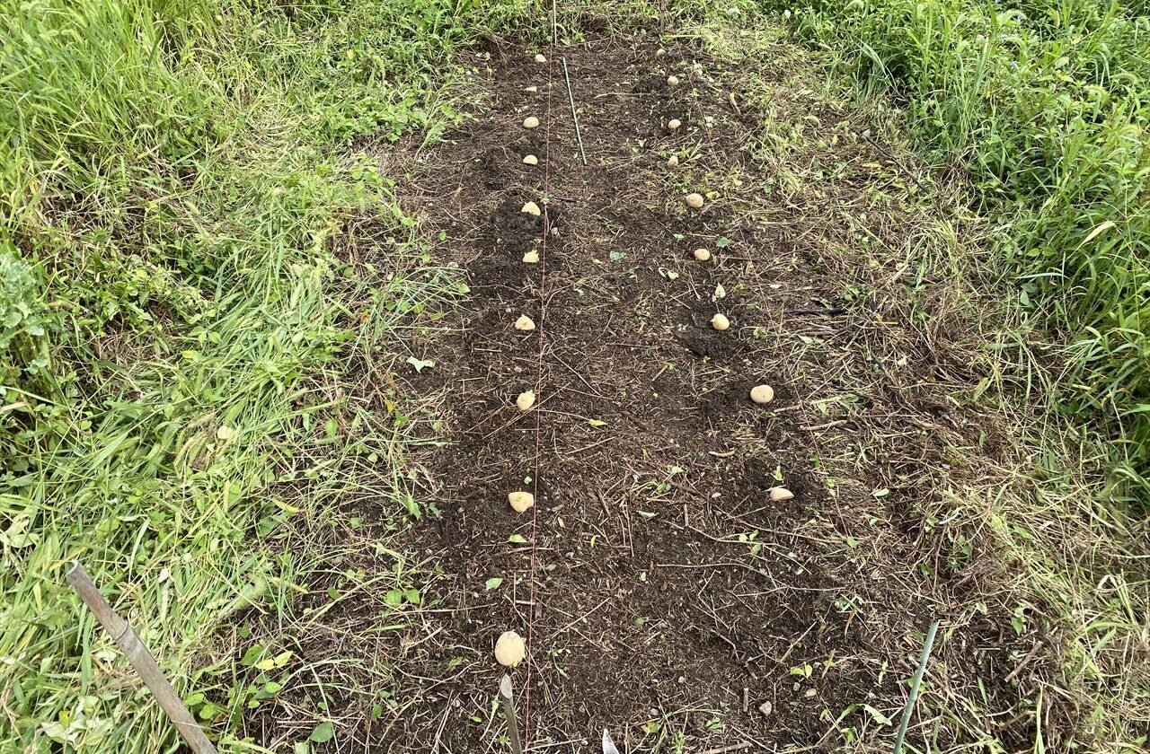 スポンサーリンク 秋じゃが芋植付け じゃがいも 2025.09.13 一昨日に大きい種イモを切って切り口を乾かしていたものが程よく乾いたので今日畑に植え付けました。 畝の草を刈って種イモを並べて植え付けます。 最後に刈った草を畝の上に戻して完了です。 品種は、デジマ。春植えにも使えるようにたくさん採れたらいいけどなあ・・・ 今日の収穫です。ズッキーニは、持って帰って切ってみると中が変色していて食べられませんでした・・・