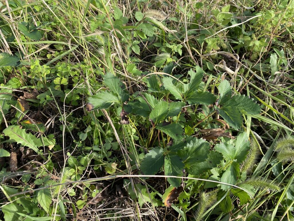 スポンサーリンク 苺の草整理 苺 2025.09.22 9月22日最初の写真は、苺の畝です。苺を収穫してから放置して夏のエノコログサが1m以上に伸びています。苺がどうなっているかちょっと心配なので草刈をします。 草を刈るとこんな感じ・・・何とか生きているようです。でも、消滅しているものもけっこうあるようです。 畝の奥の方は、かなり消えているようです。もう少ししたら新しい苗を購入して植える必要があるかも・・・この畝の右隣も苺の畝ですが、この草整理は、時間切れなのでまた明日・・・