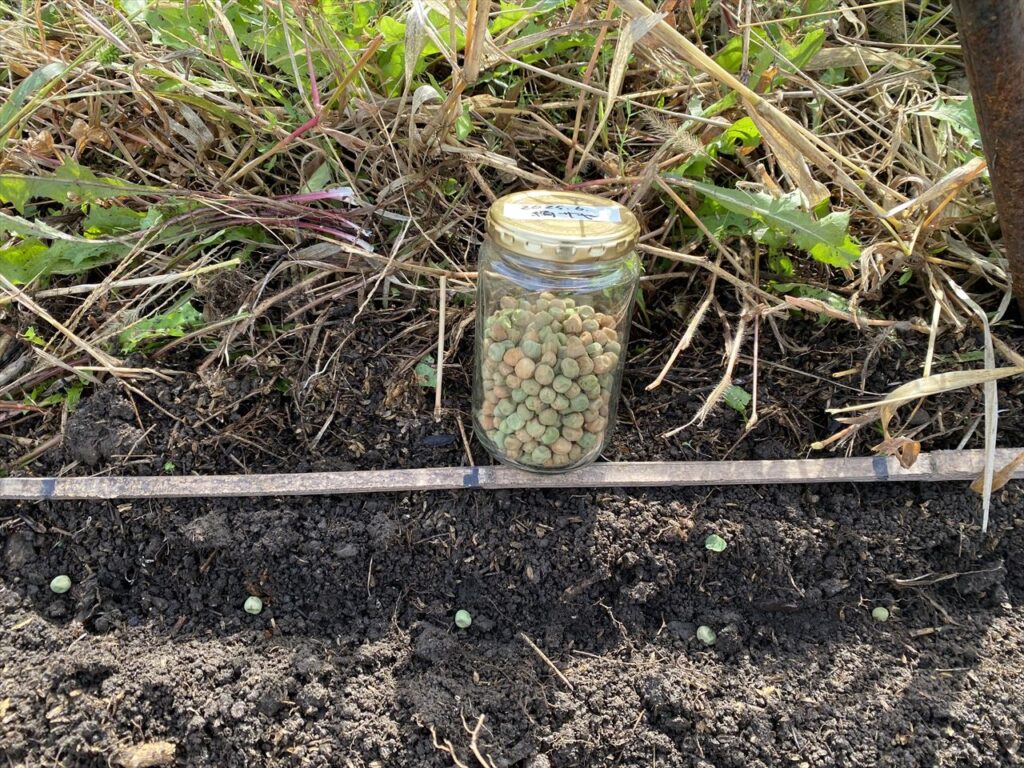 昨日に続き、今日もエンドウ豆の種まきです。