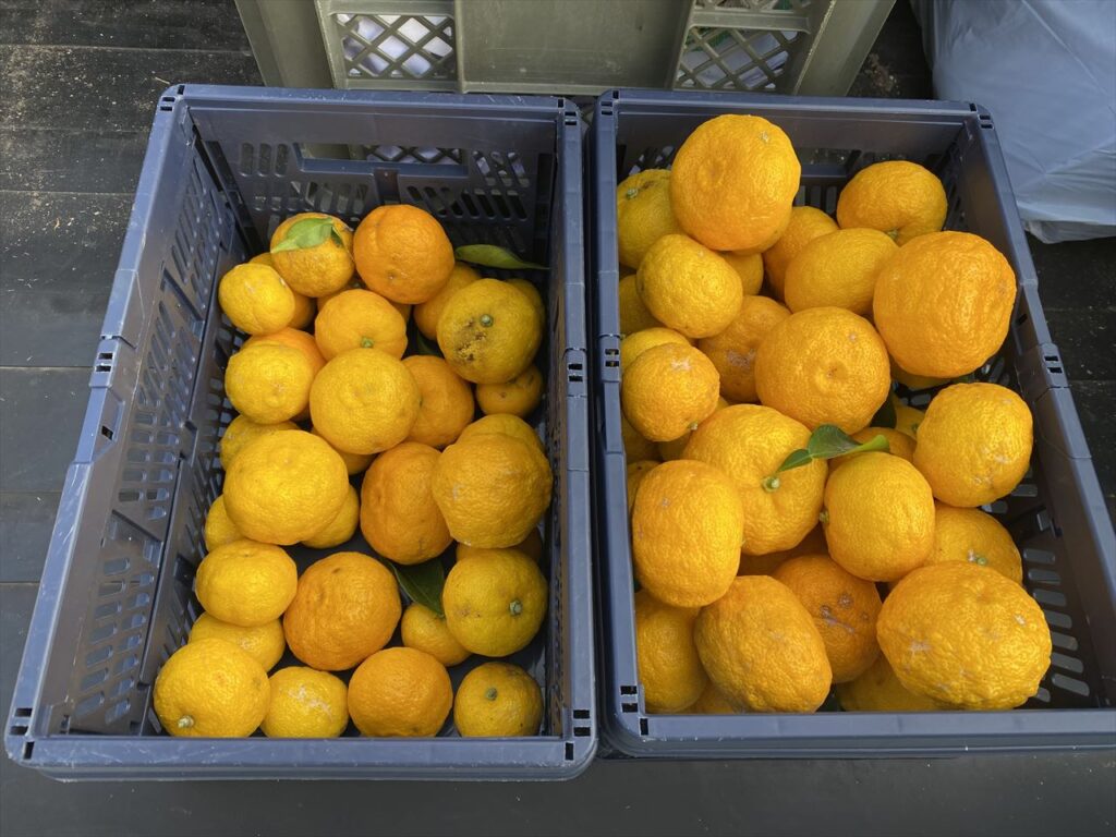 スポンサーリンク 柚子の収穫 果樹 2025.12.08 12月8日今年の柚子は、裏作なのか?ちょっと少ない・・・ 小さめの篭に1.5杯でした。去年は、野菜の収穫籠に1杯以上採れたのに・・・ まだ木の上の方に何個か残っていますが、長く鋭いトゲで採ることが出来ません。 5,6年前から毎年、柚子が採れます。柚子ジャムにします。ちょっと苦いですが、安心安全の自然栽培のジャムです。