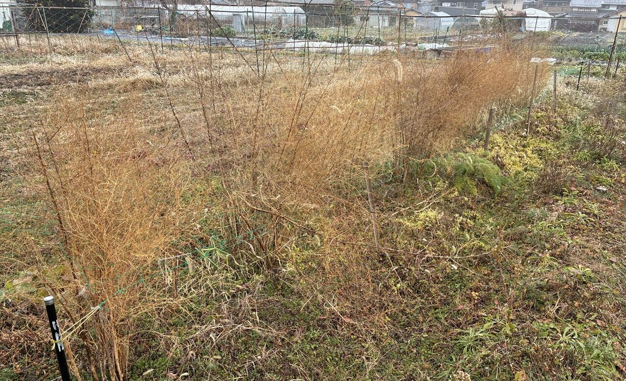 スポンサーリンク アスパラガス全刈り アスパラガス 2026.01.07 1月7日アスパラガスの色がすっかり抜けました。全刈りして春の萌芽を待ちます。 こんな感じ・・・ 残渣は、全て畝や通路に並べます。普通は、焼却処分にするようですが、この畑は、住宅が近いので燃やしません。土の栄養となるように。