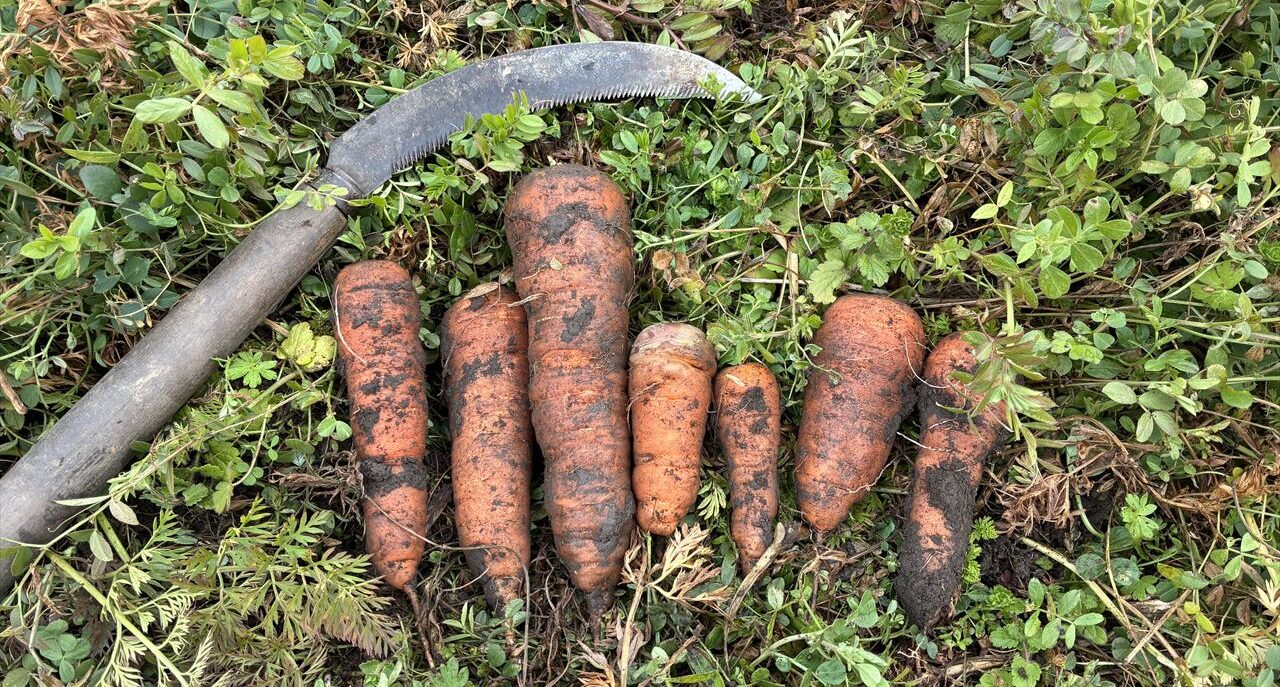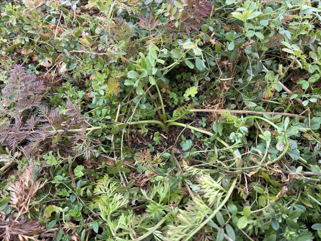 スポンサーリンク 大きな人参もあります ニンジン 2026.02.07 今年に入ってから、時々、大きな人参が採れます。今日採れたのは、肩で5センチ、長さ20センチくらいです。一般的には、普通の大きさですが、私の畑では大きい方で5センチになるのは、初めてかも・・・ 人参の畝は、現在こんな感じです。草といっしょに植わっています。大きいものもありますが、小さい物もそれ以上にいっぱいあります。毎年ちょっとづつ生育が良くなっているように思いますが、来年は、もっと良くなるのを期待してお世話したいです。