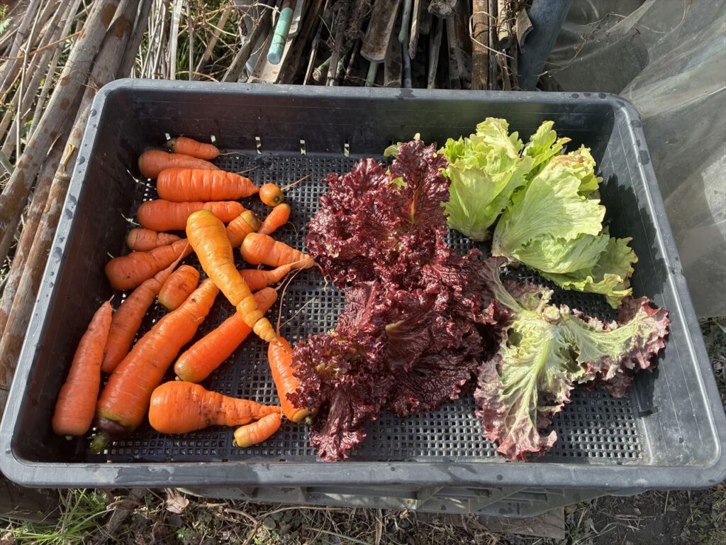 スポンサーリンク イチジクの剪定 果樹 2026.02.18 イチジクの剪定をしました。今回は、去年に伸びた枝は、全て2芽ほど残して切りました。 こんな感じ・・・バッサリ切りました。こうすると5月頃から残した芽から新しい芽が伸びて来ます。その伸びた枝に実が付きます。 去年は、8月から10月まで毎日5個から20個の収穫がありました。毎日食べるのはもちろん、ジャムも作りました。今年も期待しています。 今日の収穫です。レタスは、寒さで葉先の色が変わって萎れています。味もちょっと苦い・・・