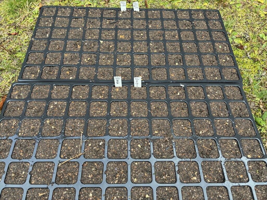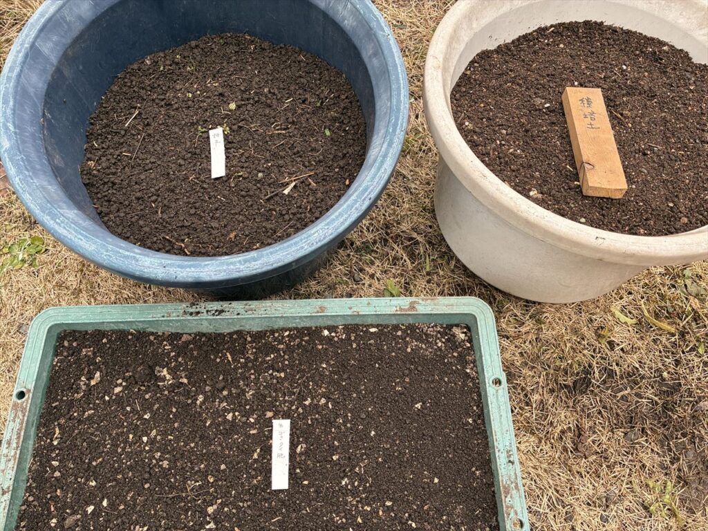 スポンサーリンク 今年最初の種まき レタス 2026.02.20 2月20日今年最初の種まきは、レタスです。品種は、サニーレタス、巻レタスのしずか。 その他は、美味タス、春菊です。76穴のセルトレイに2種類づつ播きました。来月になったらまた2回目を播きます。 培土は、畑の土と蜂場にある生ごみ堆肥を混ぜて作りました。 上の写真は、畑の土と生ごみ堆肥をフルイに通したものと白い入れ物は、それを混ぜて培土を作ったものです。自家製堆肥は、うまく育つか心配ですが、育たなかったら市販品を使用します・・・