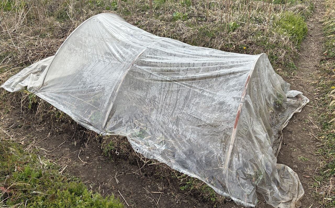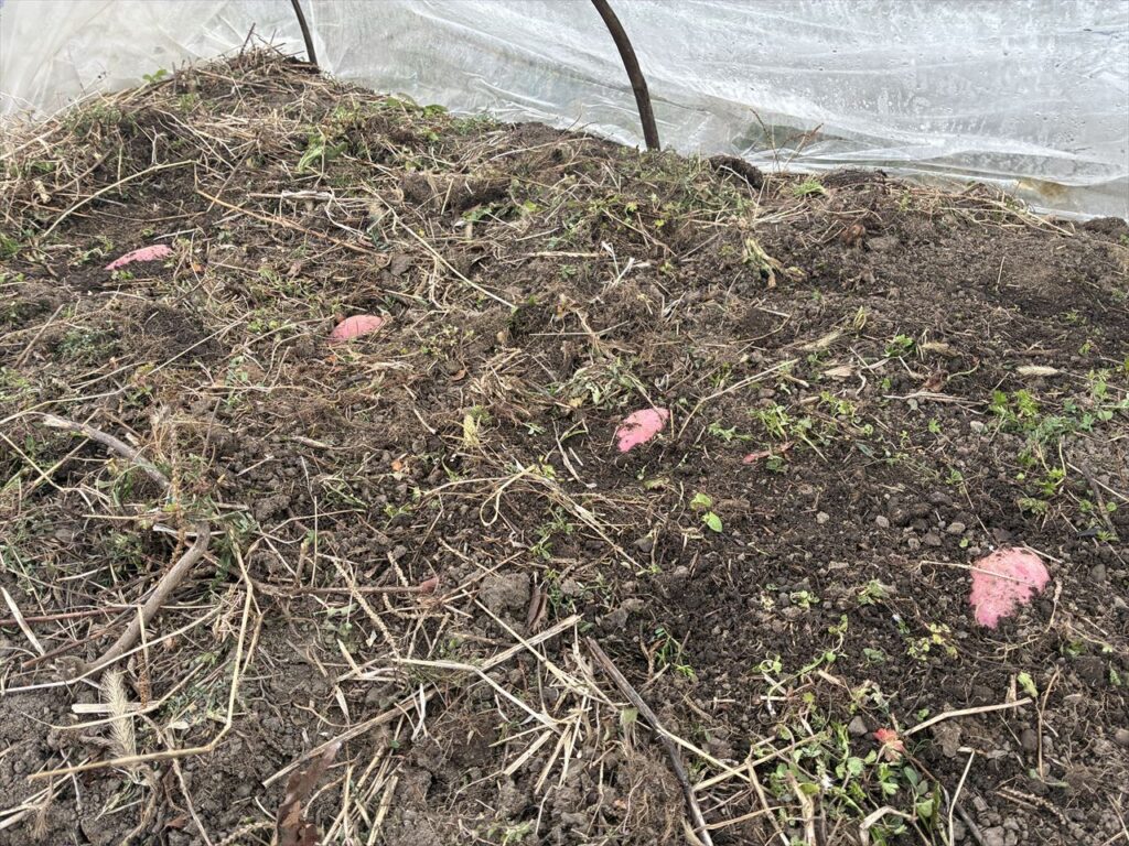 スポンサーリンク さつま芋の苗作り さつま芋 2026.03.14 二日ほど前にビニールトンネルを作っておきました。内部の地温を上げる為です。今日は、直売所で買ったさつま芋をここに伏せ込みます。 こんな感じ・・・芽の出る方を少し出して埋めるといいようですが、私には、どっちから出るのかわかりません。なので、両方ともほんの少し埋める感じです・・・ さつま芋の苗は、買ったらけっこう高いので自前で作ります。今まで何回か苗を作りましたが、たくさん出来たことがありません。今回は、うまくいくといいなあ・・・