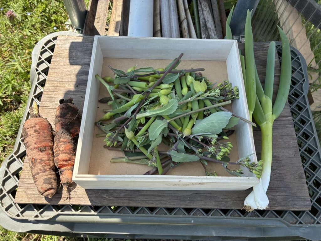 スポンサーリンク 山桜とインゲン 花 2026.04.08 4月8日この地域の里の桜は、散り初めですが、山の桜は、今が見ごろのようです。 裏山に多くの桜が咲いています。誰かが植えたか、自然と増えたか・・・知りませんが・・・かなり広範囲に咲いています。 今年の夏の豆は、インゲンもします。5月になれば、ささげも播きます。 今日の収穫です。 人参は、葉っぱが立ってきました。人参は、12月から4月まで長いこと採れました。あまり大きくはありませんが、数は、たくさん採れたのでよかったですw・・・