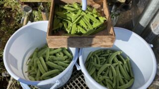5月14日絹さやエンドウ、スナップエンドウ、ウスイエンドウと三種類のエンドウの収穫が出来ました。今までは、絹さやエンドウとスナップエンドウの収穫だけでしたが、今日は、ウスイエンドウもそろって収穫出来ました。上の写真の右からウスイエンドウ、絹...